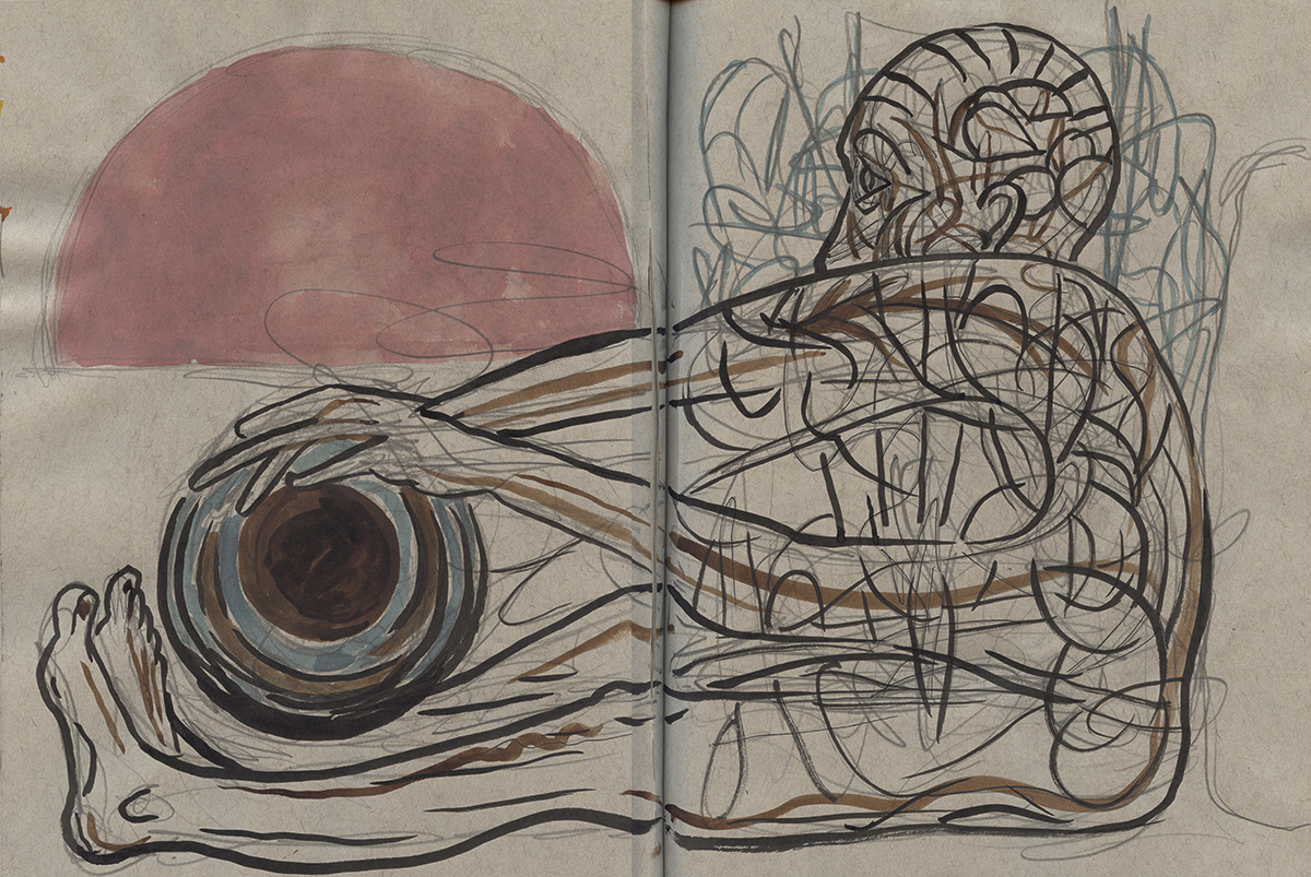 I meet with my other self 17" x 11", graphite and color inks on paper