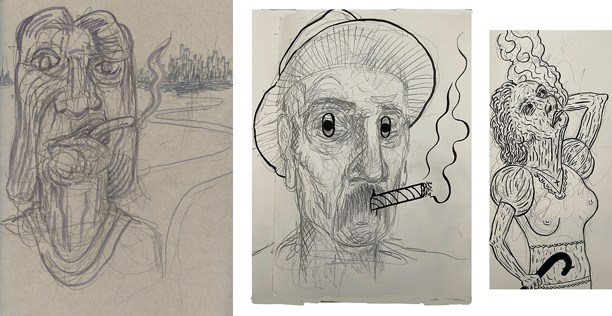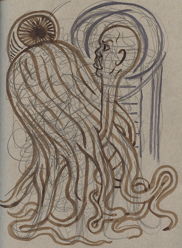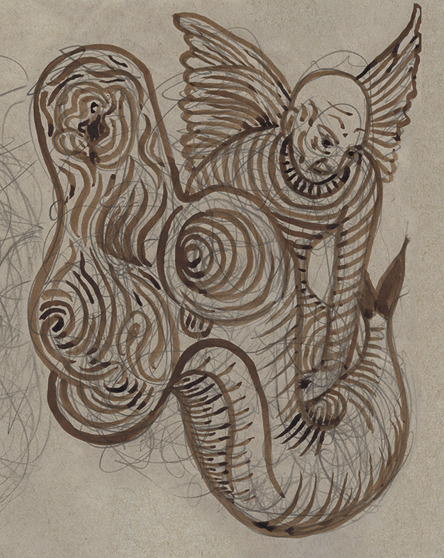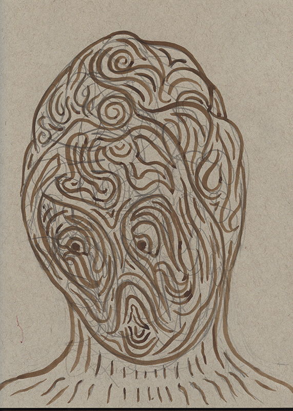 sailor with beak 11" x 8.5", graphite, walnut ink, and gray ink on paper