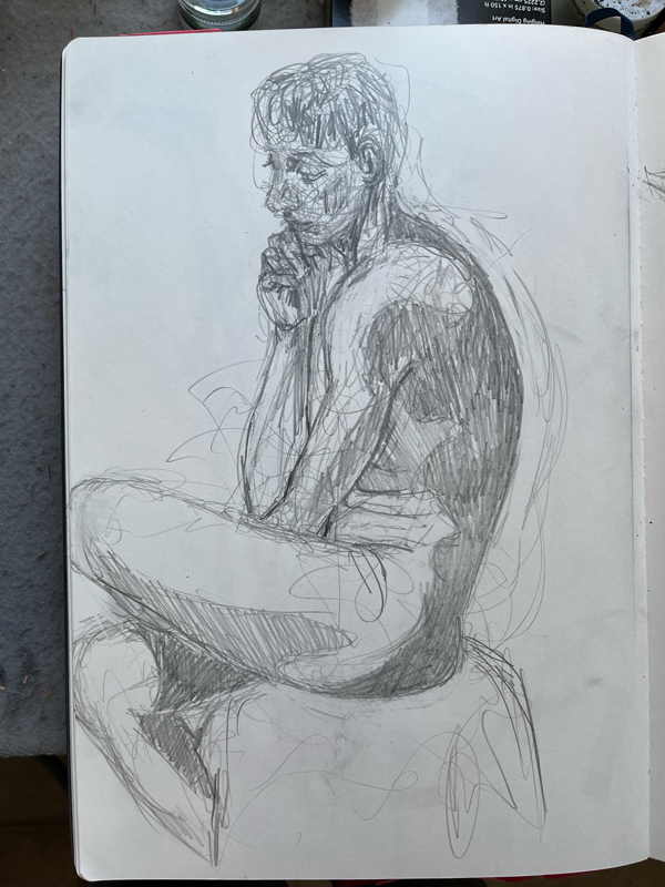sitting model with hair up 16.5" x 11.5", graphite on paper