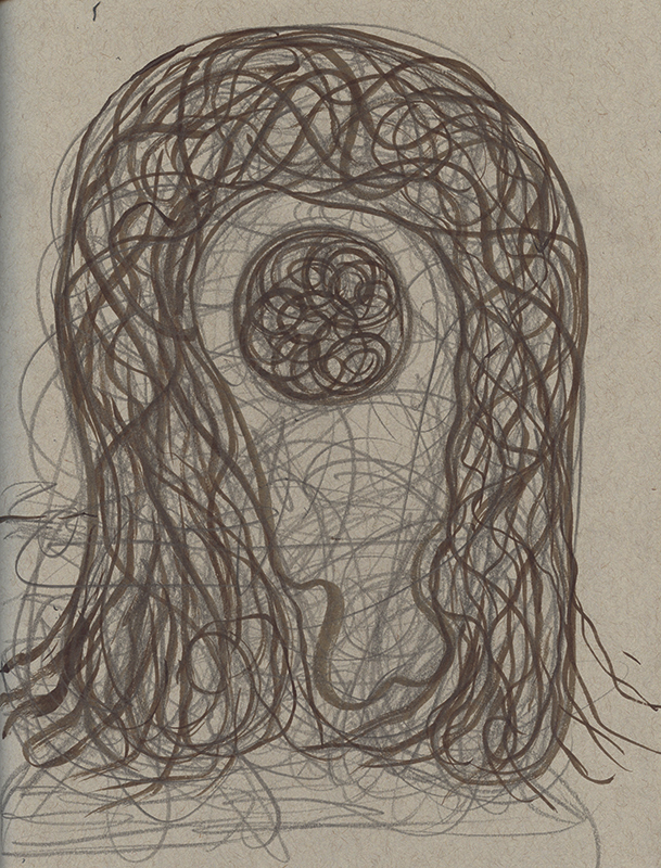 straw broom portrait 11" x 8.5", graphite and walnut ink on paper