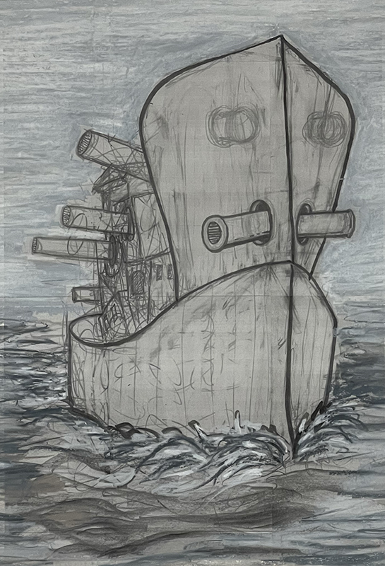 life raft for empty tubes 17" x 11", graphite and color ink on paper