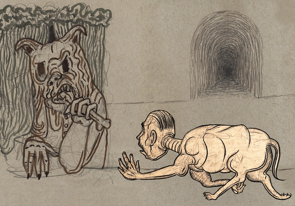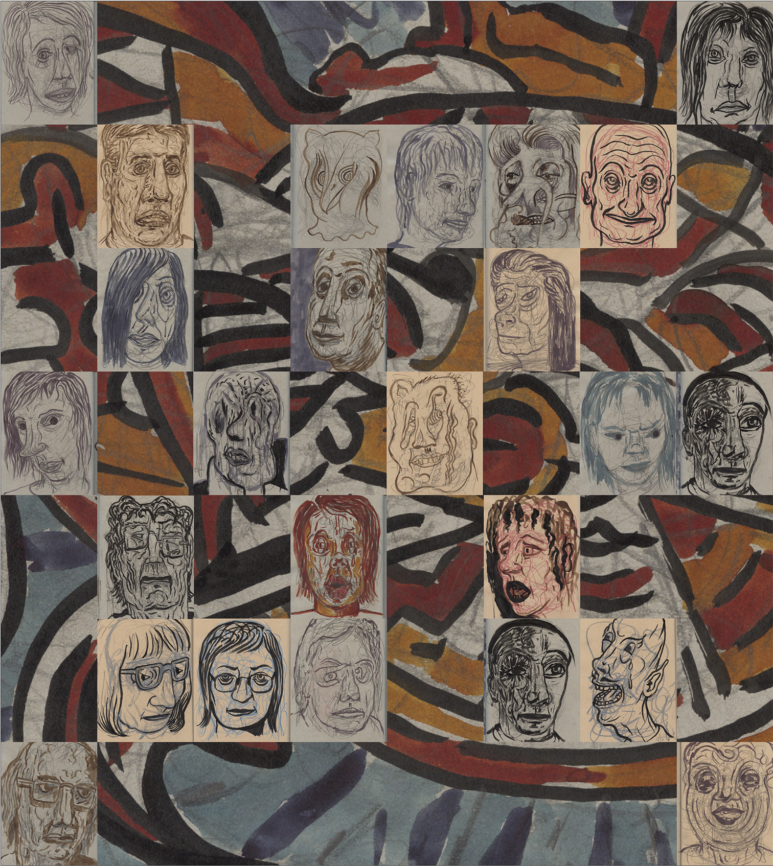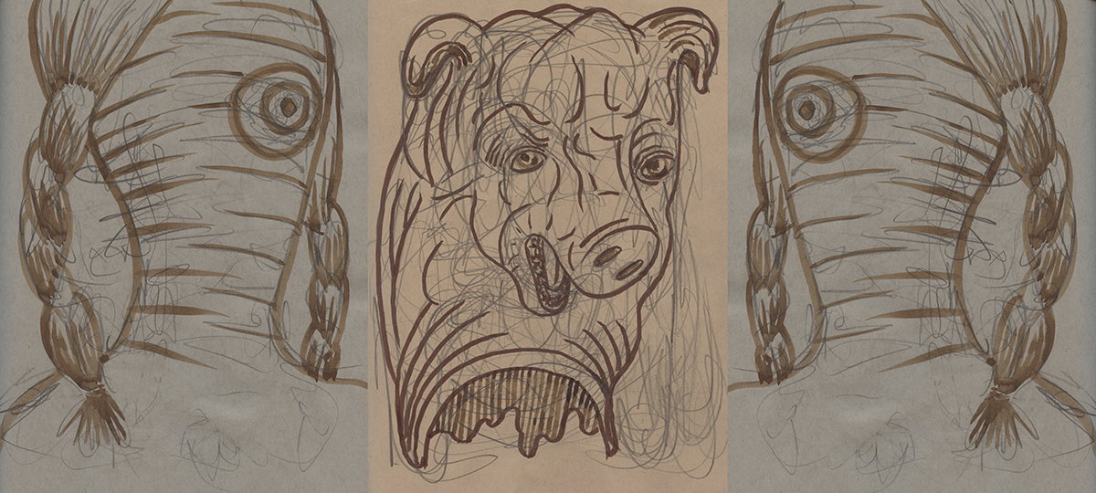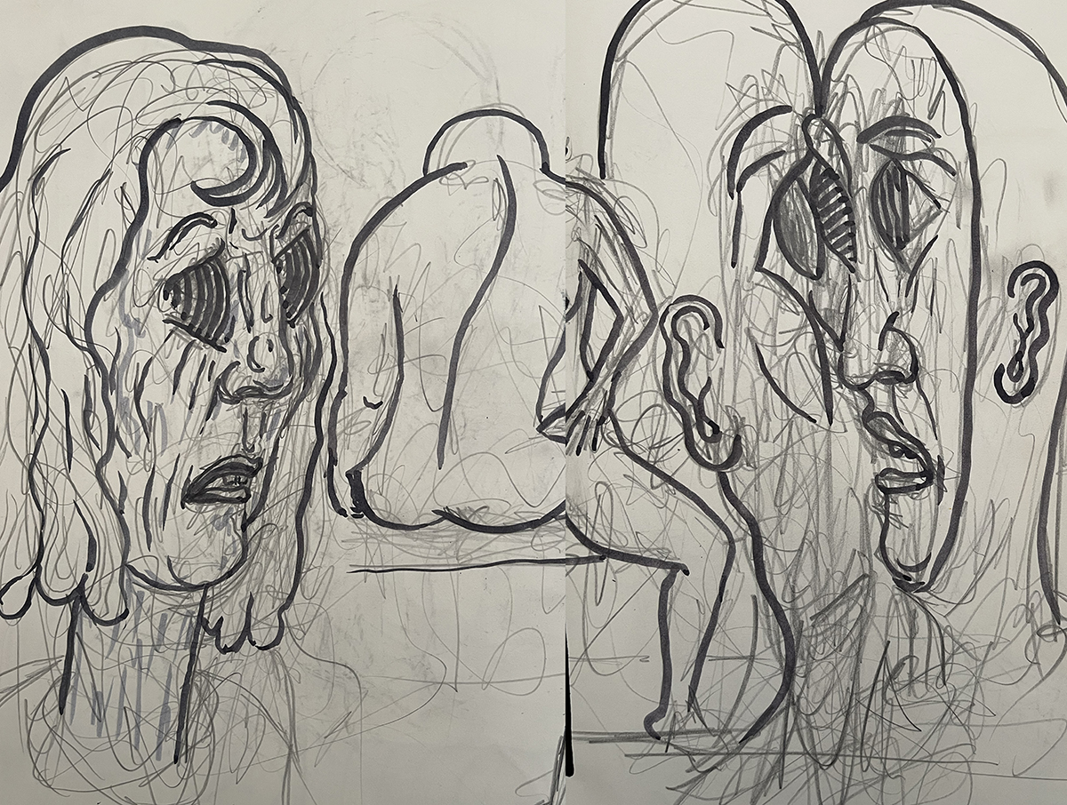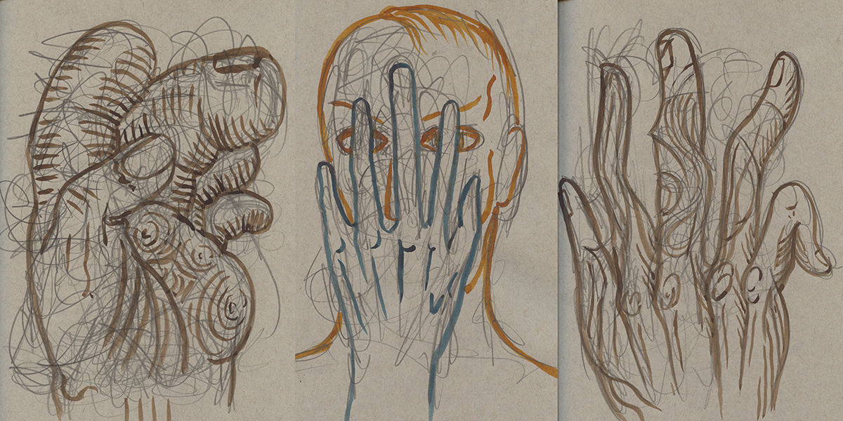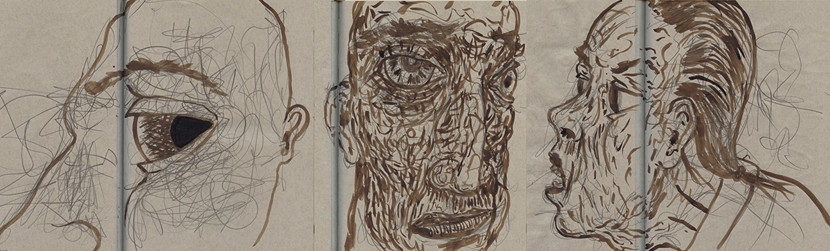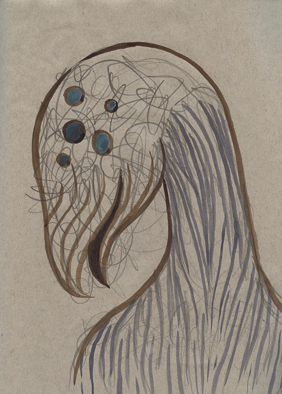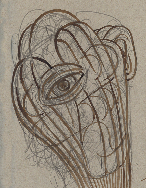 extra eyes 8.5" x 17", graphite, gray ink, and walnut ink on paper