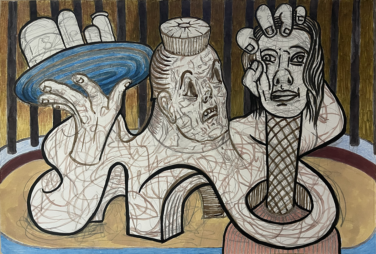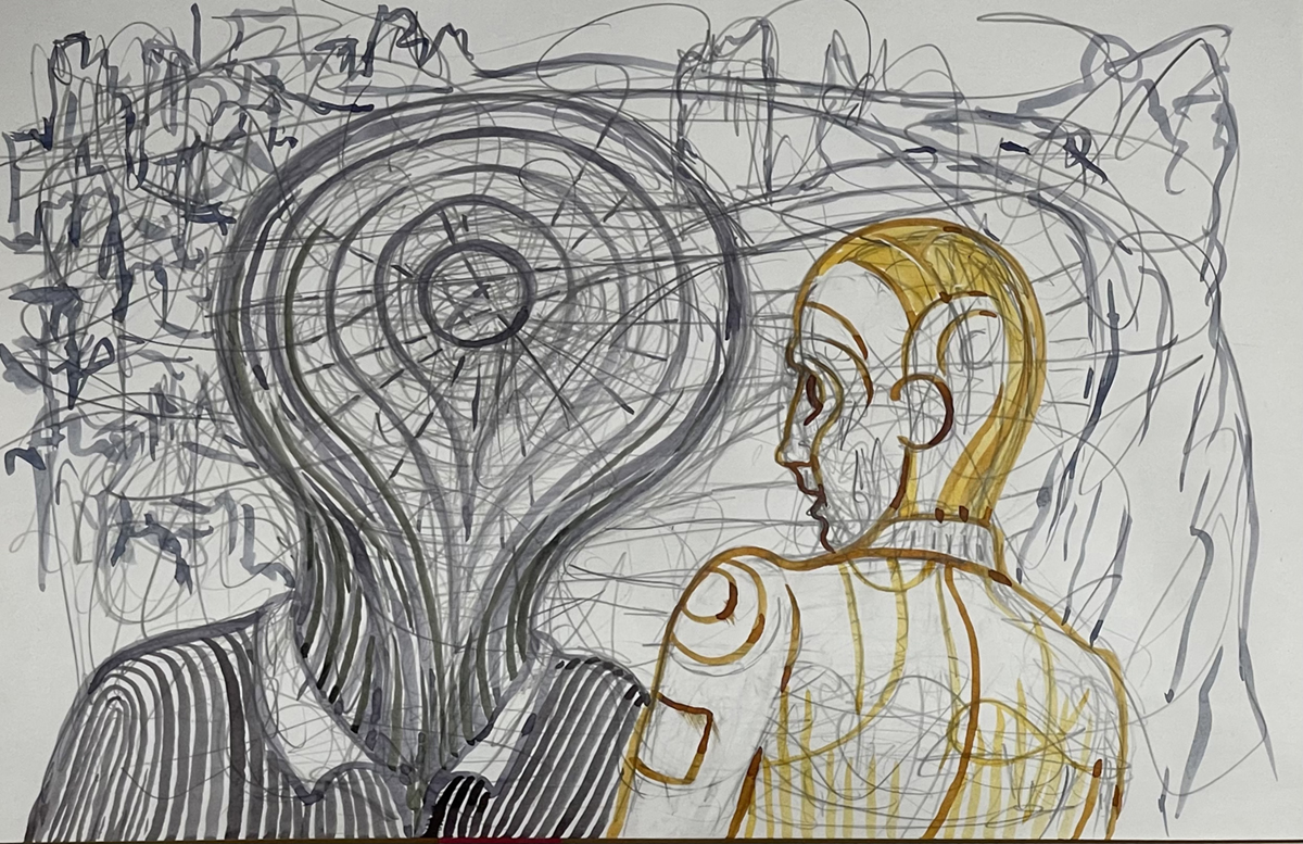 I meet with my other self 17" x 11", graphite and color inks on paper