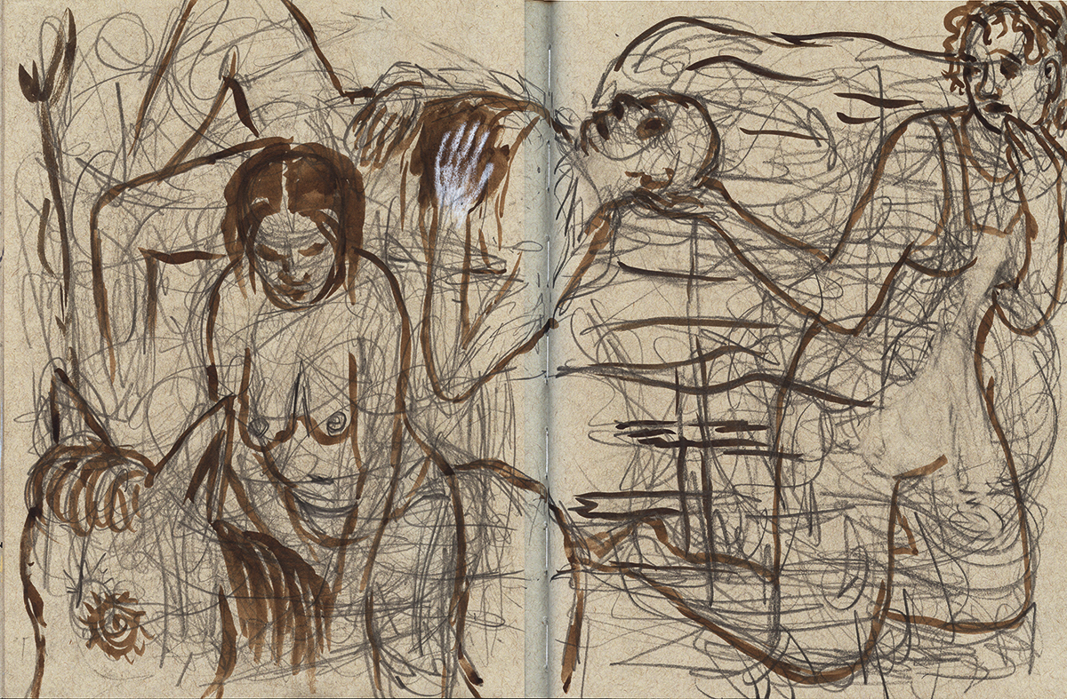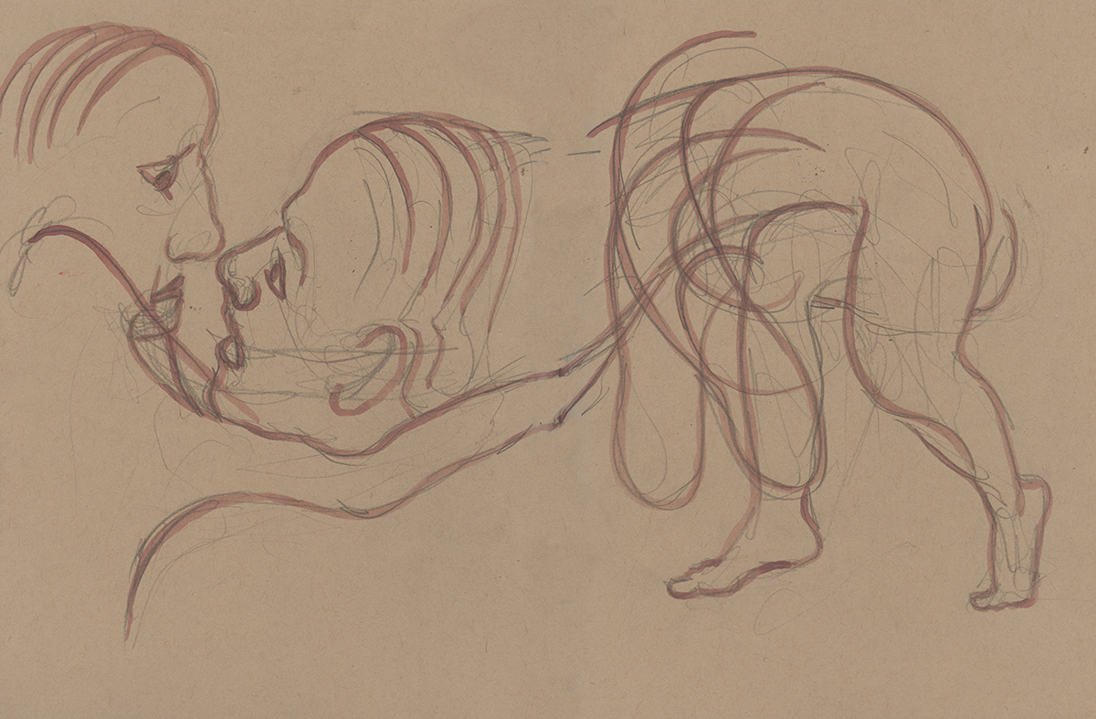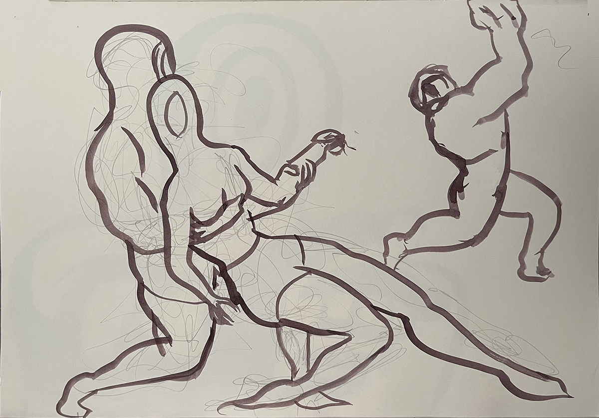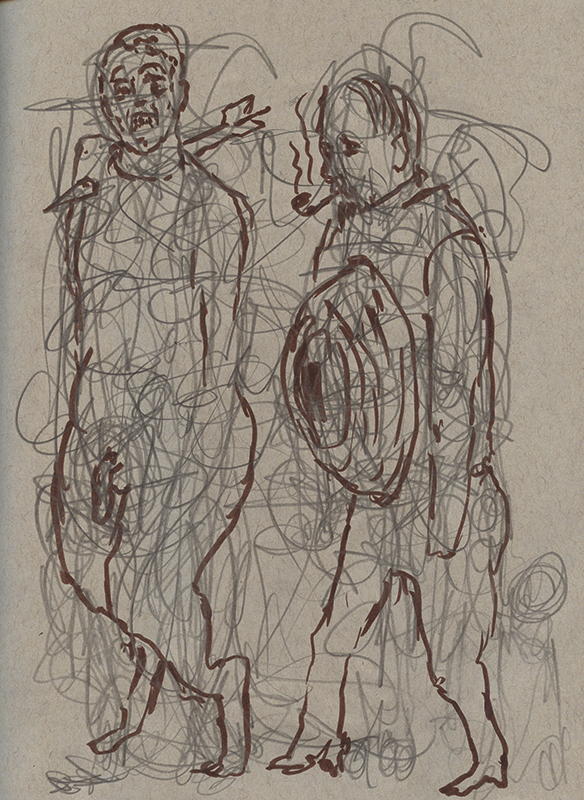 two male post impressionists 11" x 8.5", graphite and walnut ink