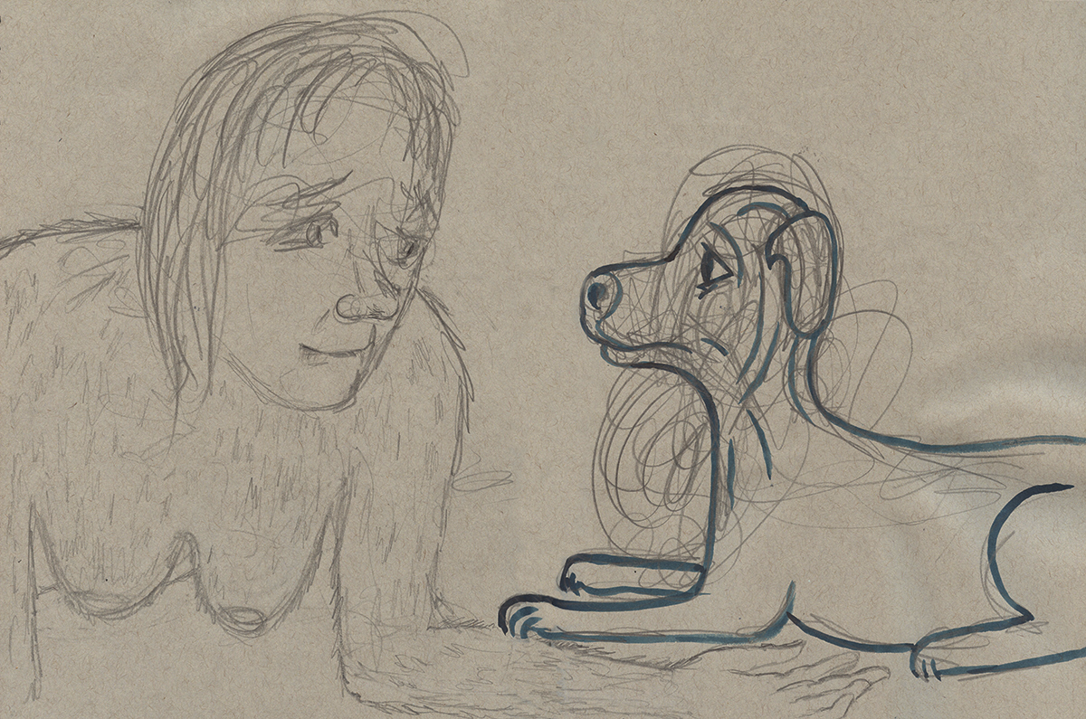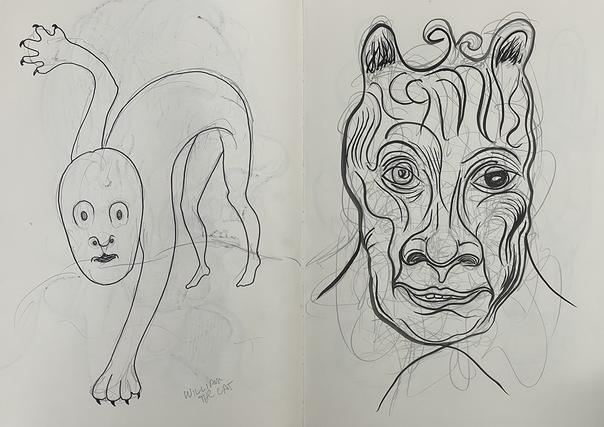 william the cat and tuneck 22" x 17", graphite and ink on paper
