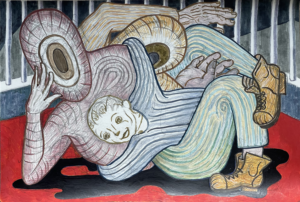 family jail cell 11" x 8.5", graphite, ink, and colored pencil on paper