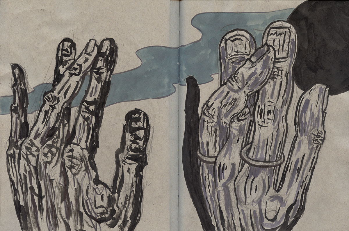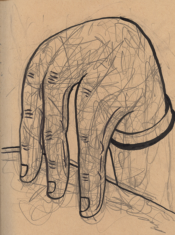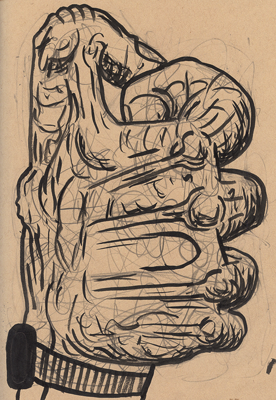 old fist 11" x 8.5", graphite and walnut ink on paper