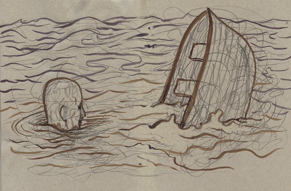 swimming the north sea 11" x 8.5", graphite and ink on paper