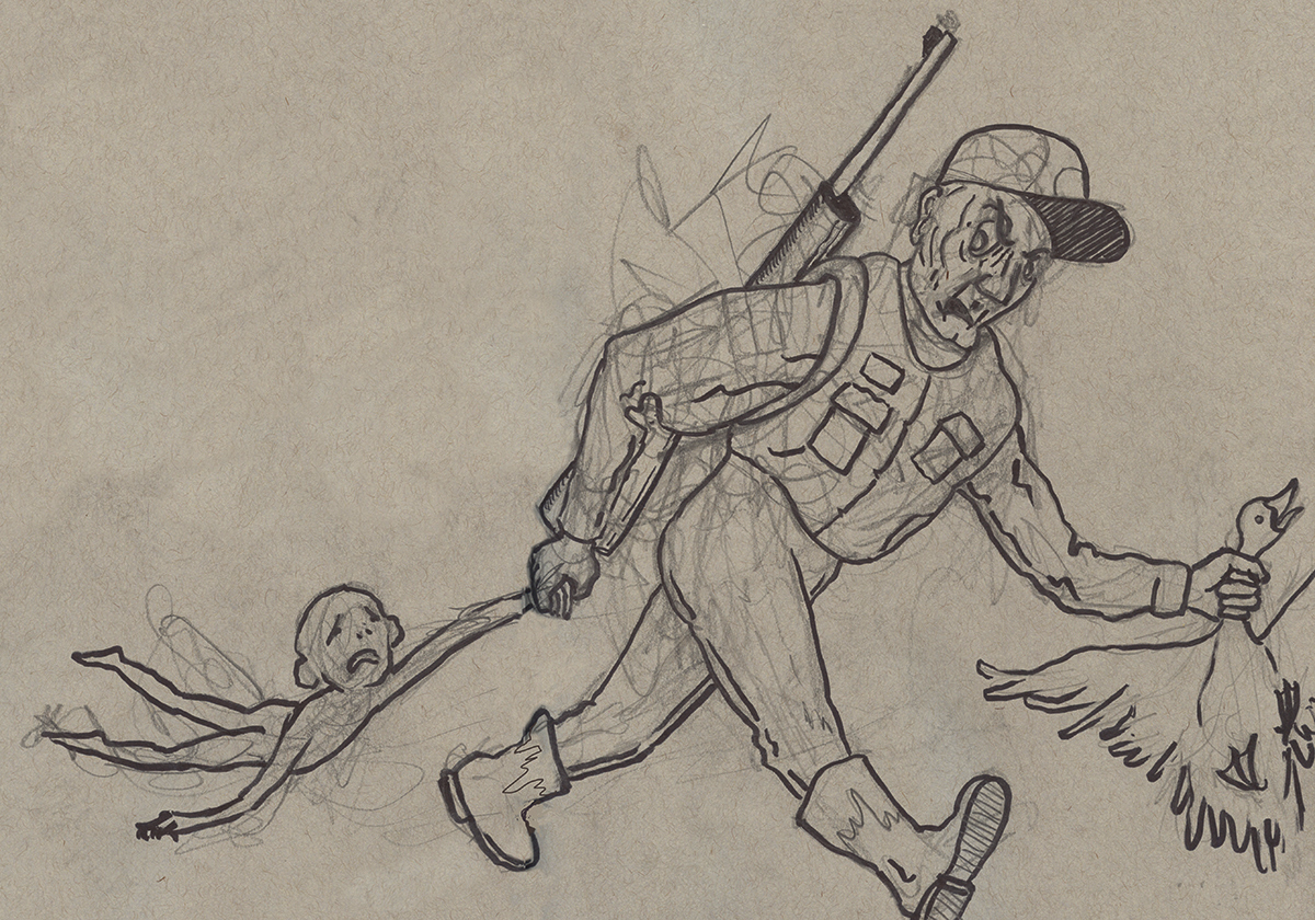 duck hunt 17" x 11", graphite and sumi ink on paper