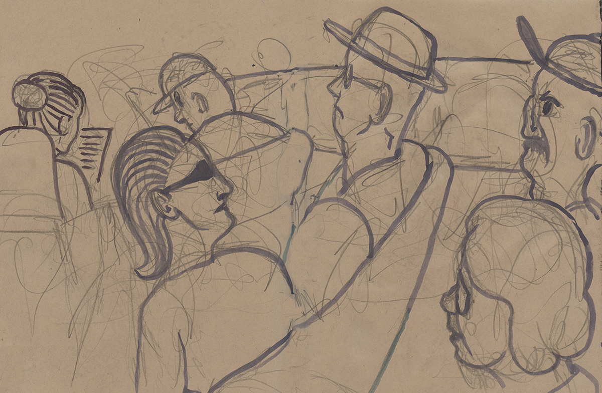 all aboard 16.5" x 11.25", graphite and walnut ink on paper