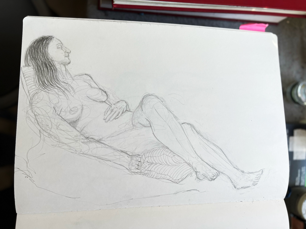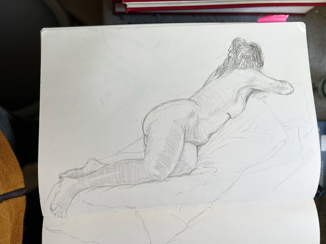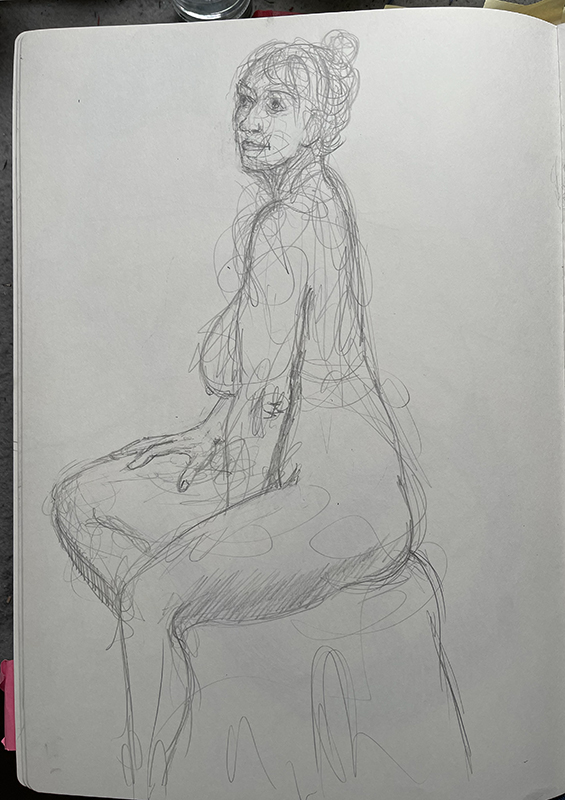 sitting model with hair up 16.5" x 11.5", graphite on paper