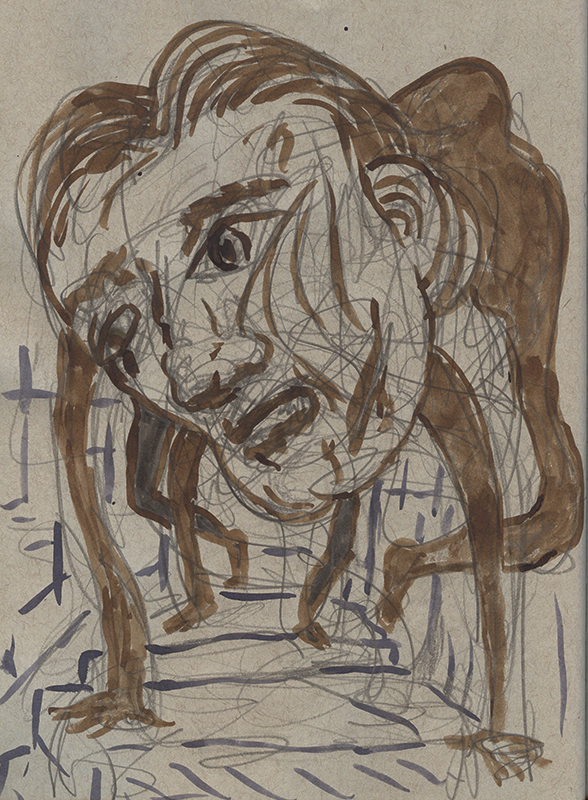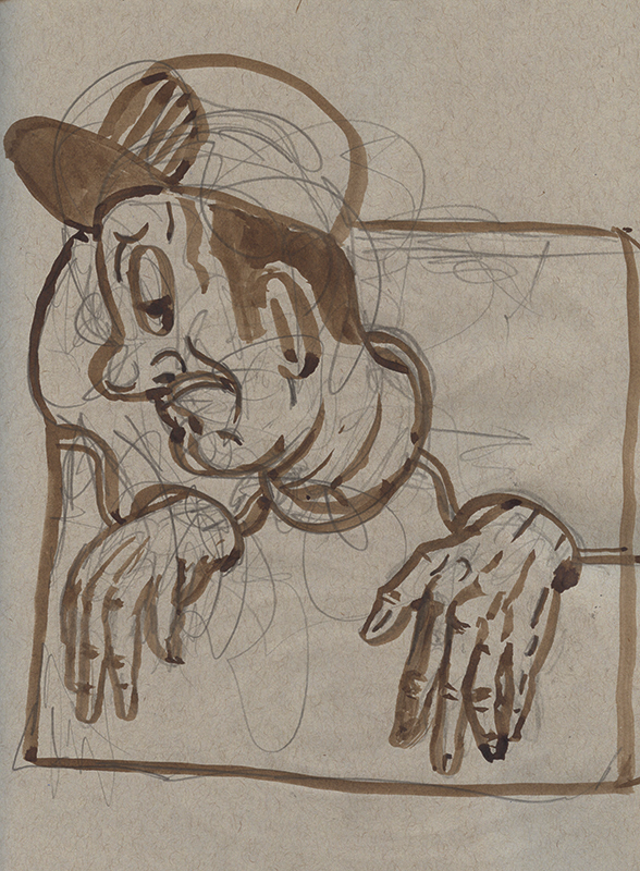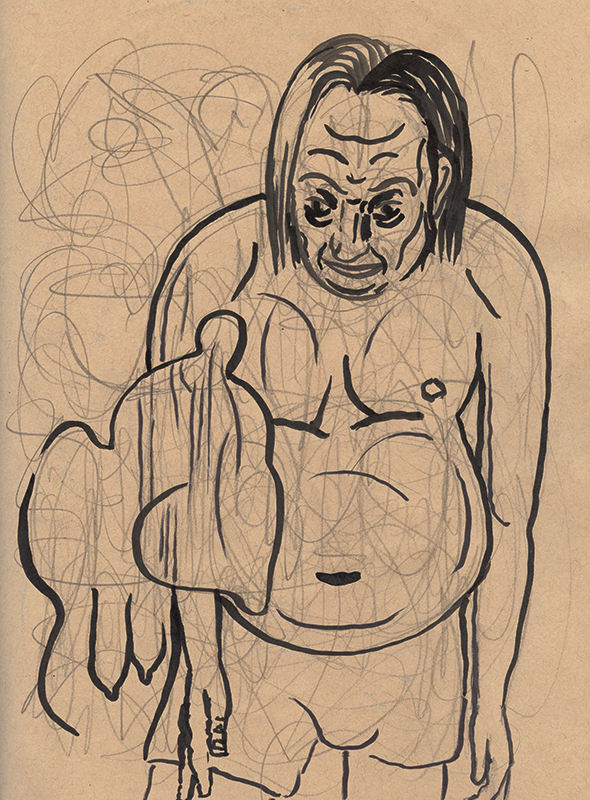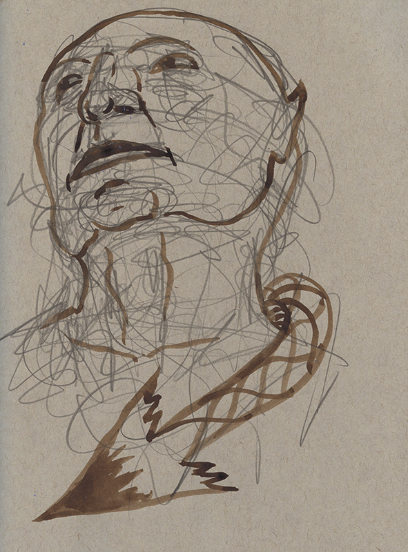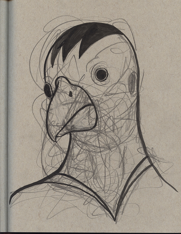 sailor with beak 11" x 8.5", graphite, walnut ink, and gray ink on paper