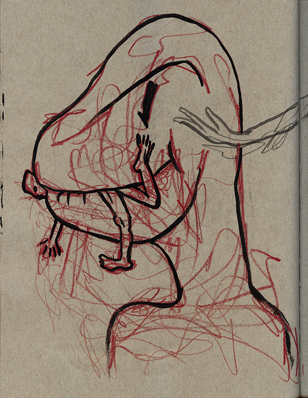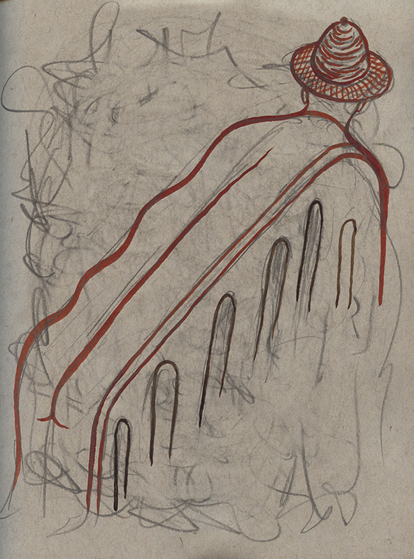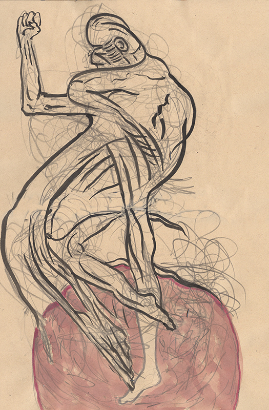 sustenance 11" x 8.5", red pencil and sumi ink on paper