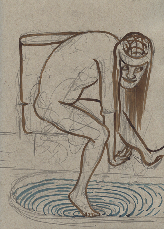 dancing in the ripples 11" x 8.5", graphite, wax pastel, and sumi ink on paper