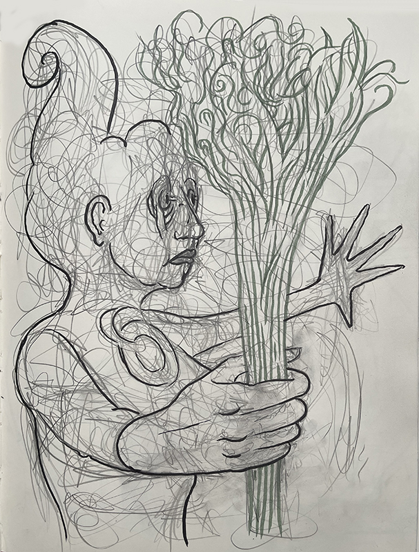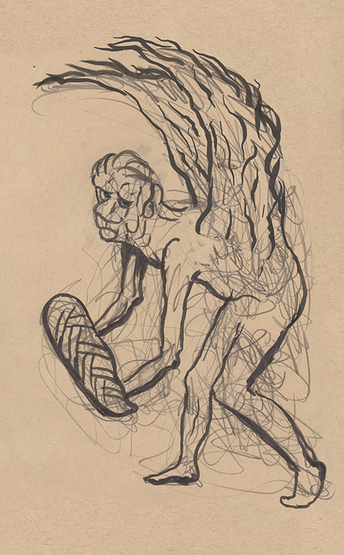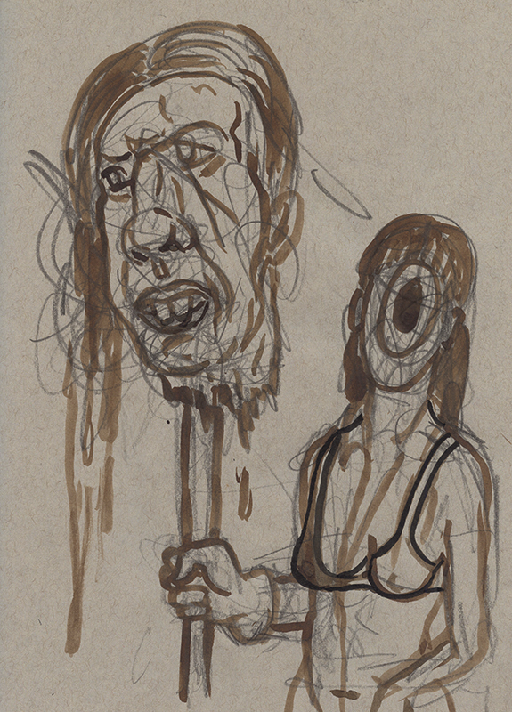 straw broom portrait 11" x 8.5", graphite and walnut ink on paper