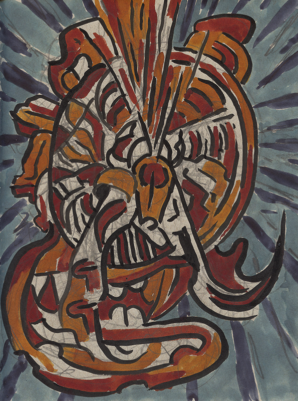 one eyed rage machine 11" x 8.5", graphite, wax pastels, and sumi ink on paper
